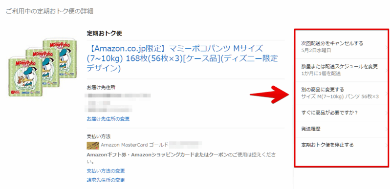 ところが、Amazon定期おトク便なら、発送済みの商品の分だけ支払いが発生するので安心です。