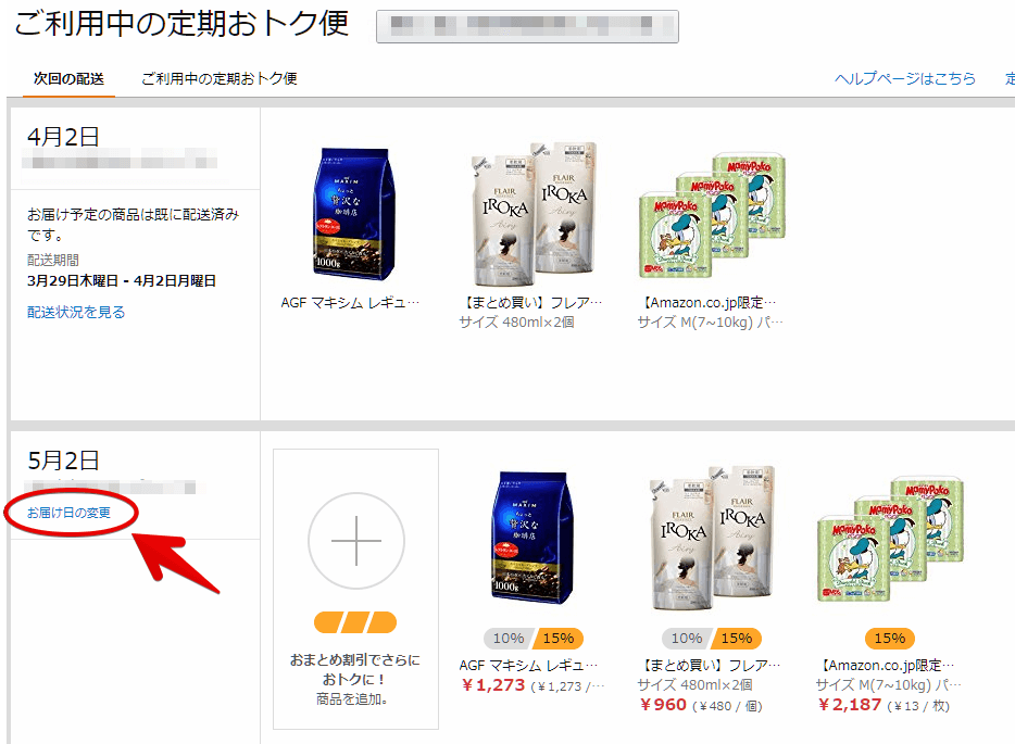 Amazon定期おトク便は、毎月の配送の日付をあらかじめ指定することができます。