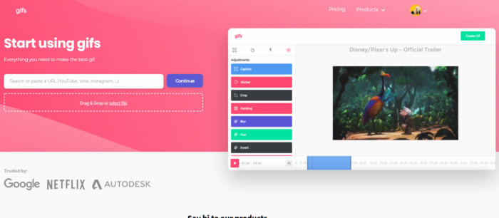 Gifsは、YoutubeやインスタグラムのURLをコピペするか、動画ファイルを直接ドロップしてしてアニメーションGIFを作成します。
