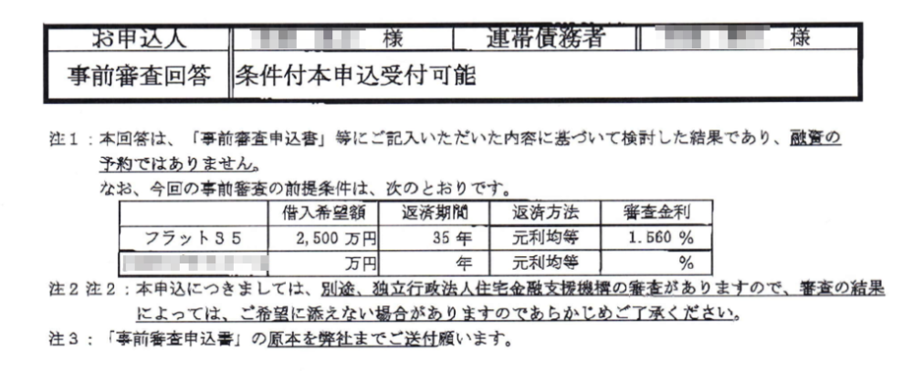 フラット35の事前審査をクリアし、書類のコピーを確認。
