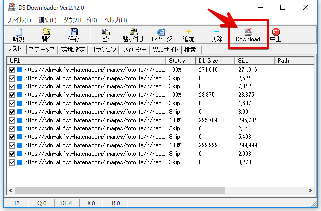 パラメーターを変更しながら、DSダウンローダーにどんどんコピペしていきます。