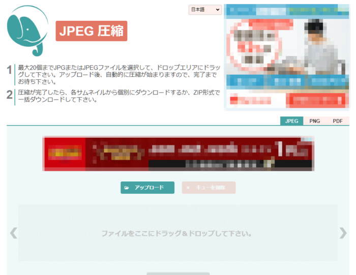 JPGの他、PNGやPDFも軽量化できるので、とても便利です。