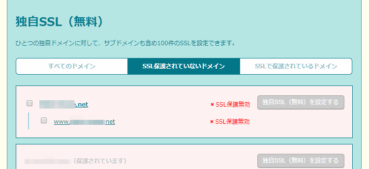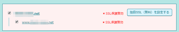 チェックを入れると、右側の「独自SSL(無料)を設定する」ボタンが点灯するのでクリック。
