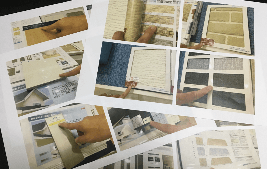 こんな感じで、カタログで選んだデザインを写真に残します。メモなど取るよりこの方が簡単で確実です。